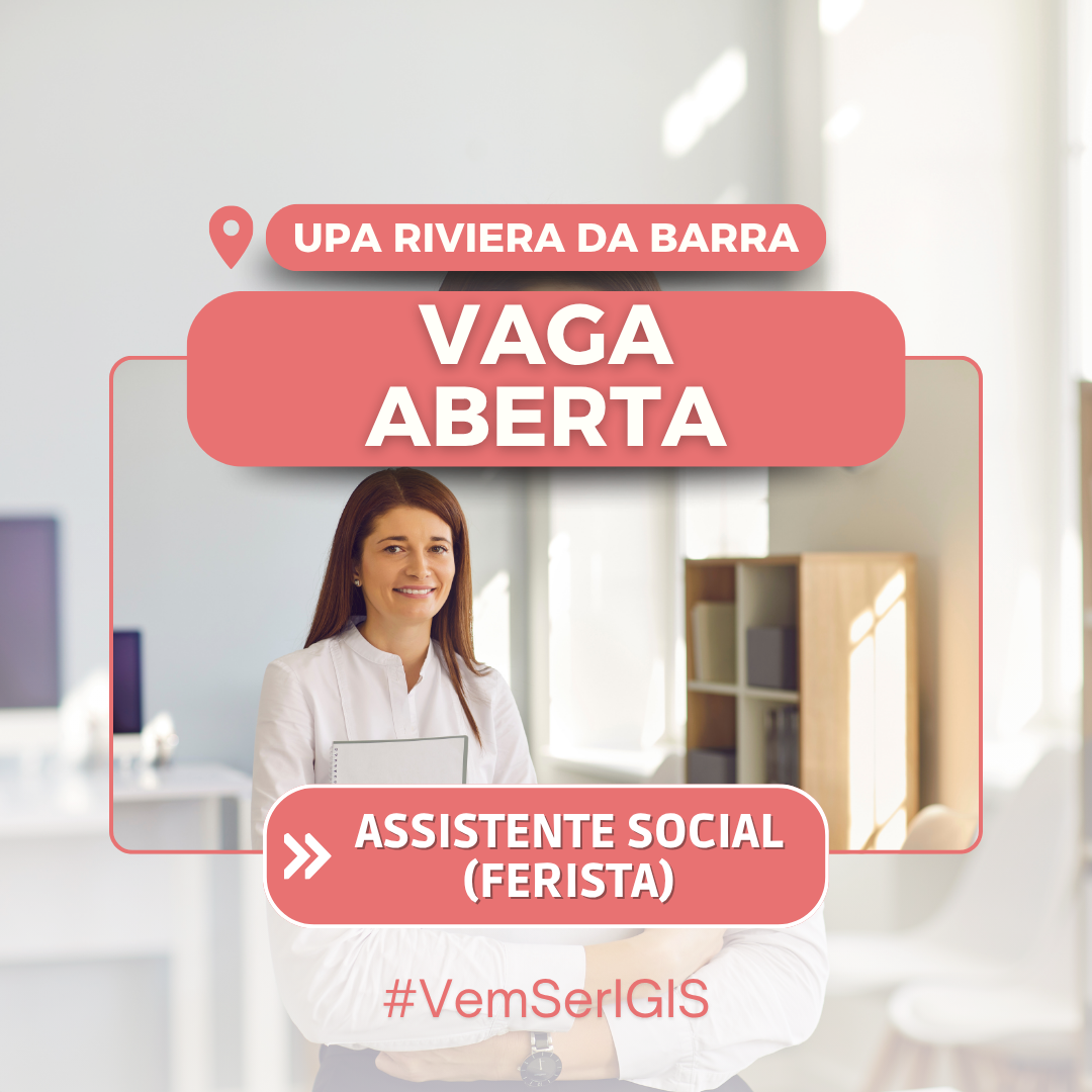 Requisitos da vaga: Ensino Superior completo em Serviço Social com devido registro no conselho e Pacote Office.
