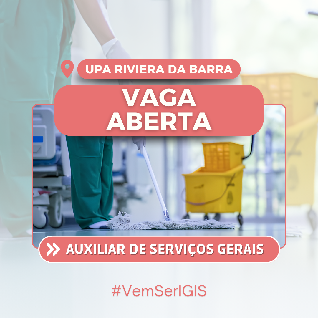 Requisitos da vaga: Ensino Fundamental Completo; Experiência com higienização hospitalar.