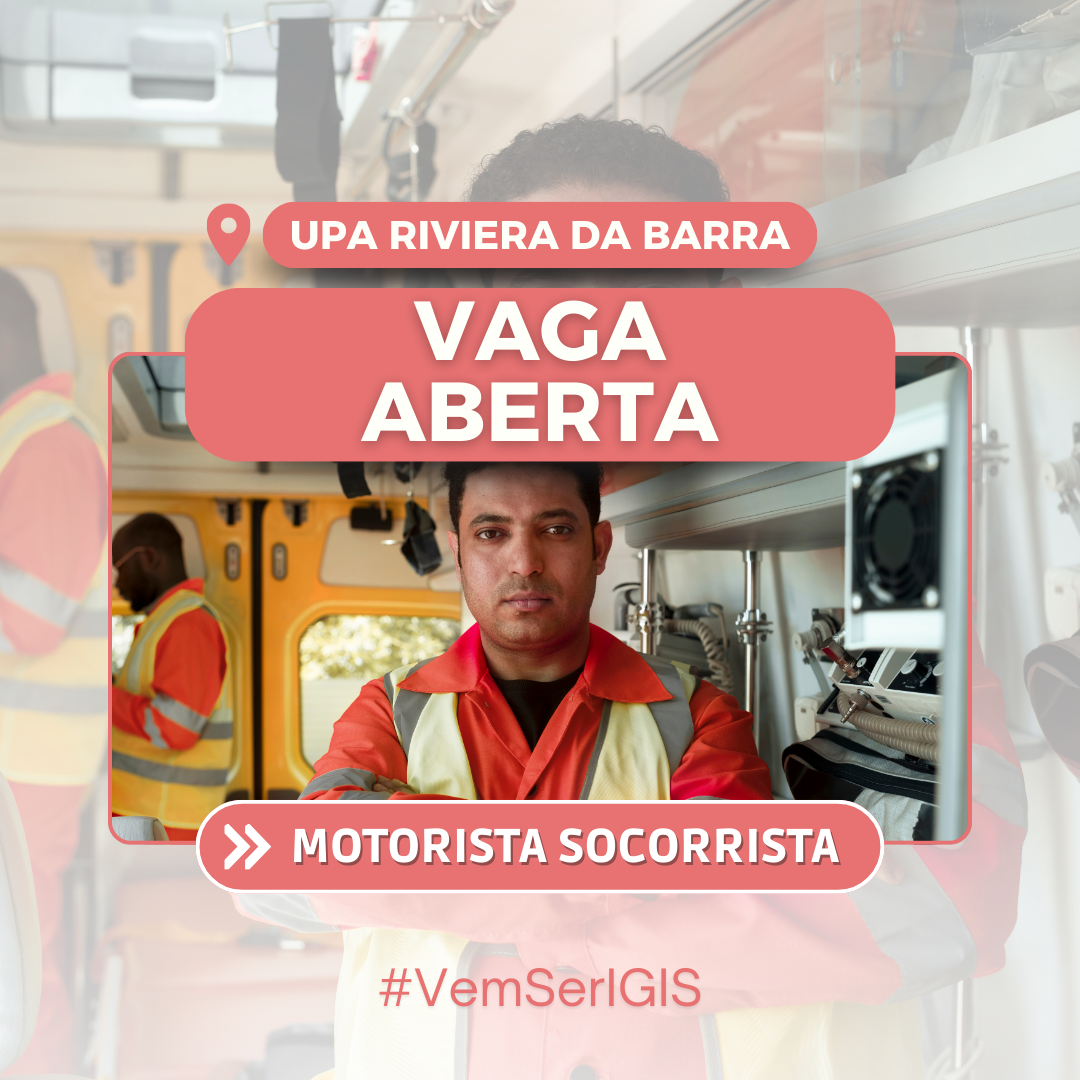 Requisitos da vaga: Ensino médio completo; Carteira de habilitação categoria D; Curso de Socorrista; Curso de Condutor de Veículo de Emergência; Experiência prévia como condutor de ambulâncias.